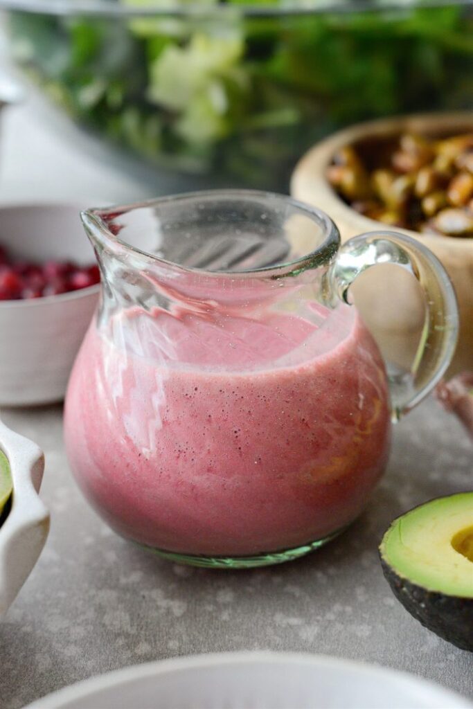 Drizzle the dressing over the salad just before serving. Toss lightly so everything is coated without becoming soggy. The salad should look glossy, vibrant, and lightly dressed with a mix of crunch and softness.